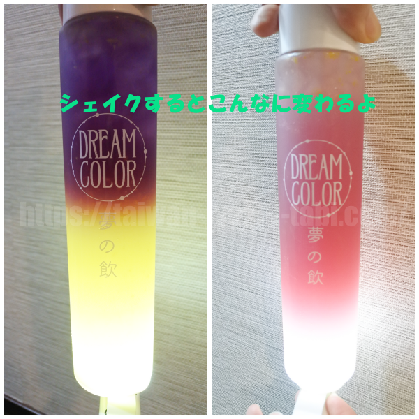 まったく違う色になりましたよ、なかなかおいしい飲み物です。