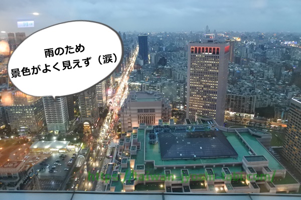予約したときには「夕暮れが見たいなぁ」と思って、午後5時を予約したのですが、雨に降られるという残念な天気でした。