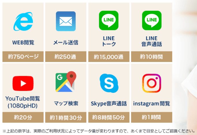 こちらのグローバルWiFiの図はデータ量600MBのデータ通信量の目安です。